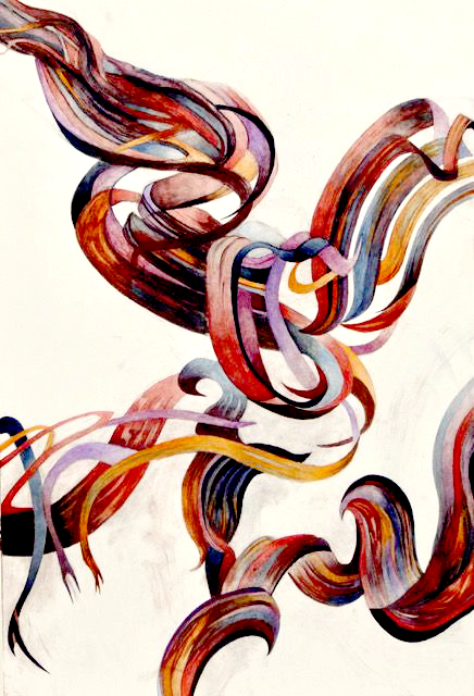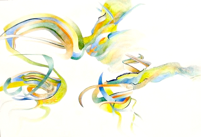 Die rasch entstandenen Pastellskizzen dienen als Ausgangspunkt für die Weitergestaltung mit Aquarellfarbe. Aus der rauen, diffusen Skizze heraus kristallisieren sich Formen und Linien; Bewegungs‐ und Ausdrucksspuren werden aufgegriffen und betont, Farben intensiviert und differenziert, räumliche Ansätze ergeben sich wie von alleine. Die gestische Pastellskizze wird transformiert und bekommt einen völlig neuen Charakter.
