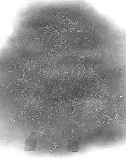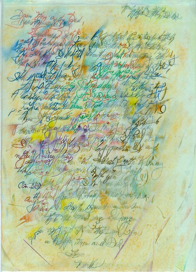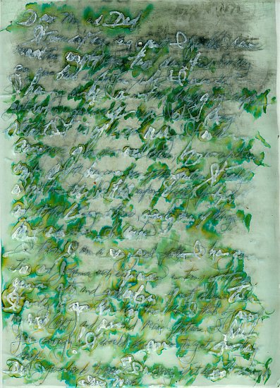 und/oder der Bildtitel vermögen jedoch einen Hinweis auf den Inhalt zu geben. Die letzten drei Bilder sind ebenso entstanden wie das erste: Durch Sichtbarmachen der zunächst zufällig auf dem als Schreibunterlage für die Briefe benutzten Papier.