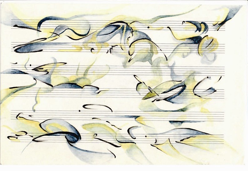 Synthese, 2022 Graphit, Aquarell auf Notenpapier 16,7 x 25,2 cm