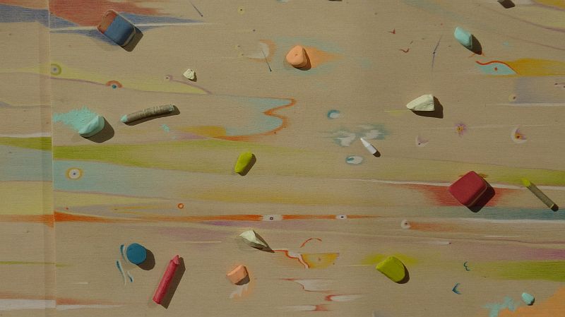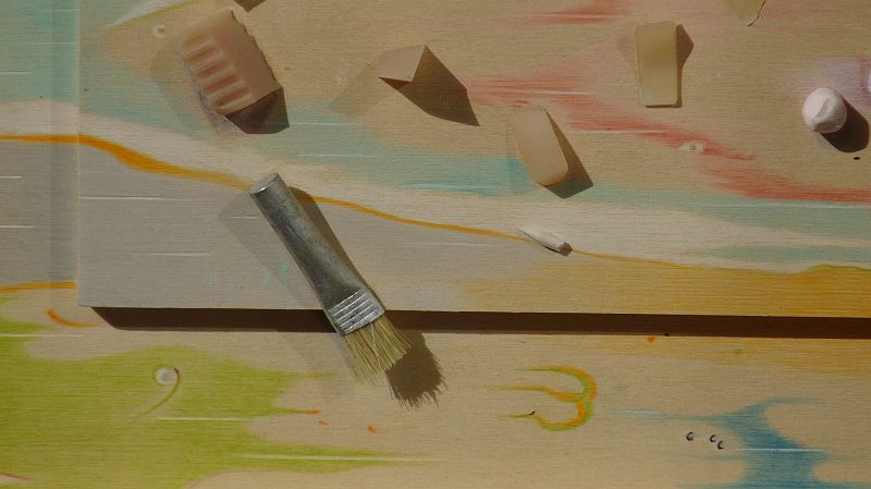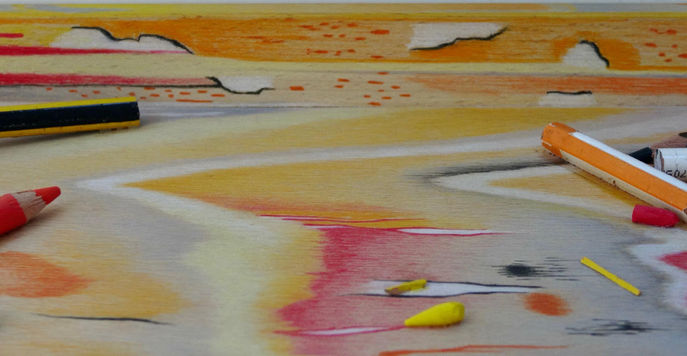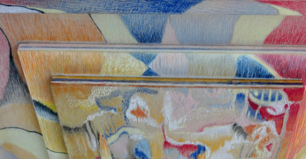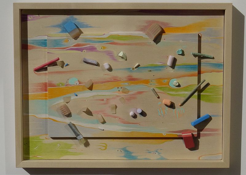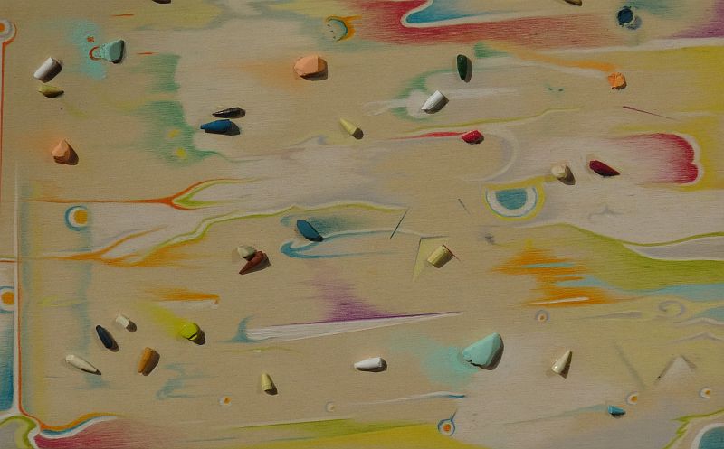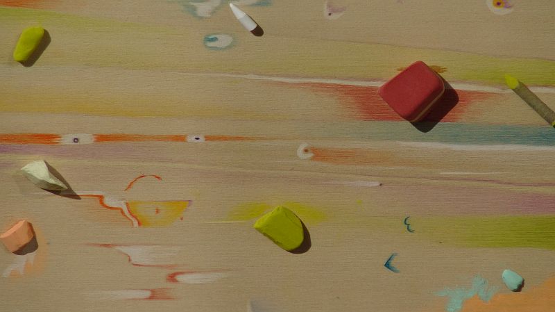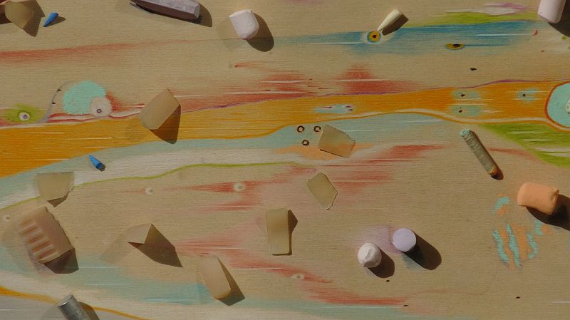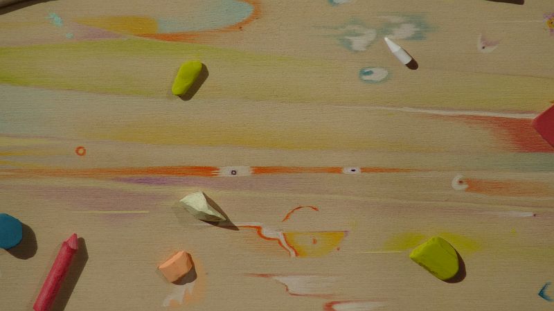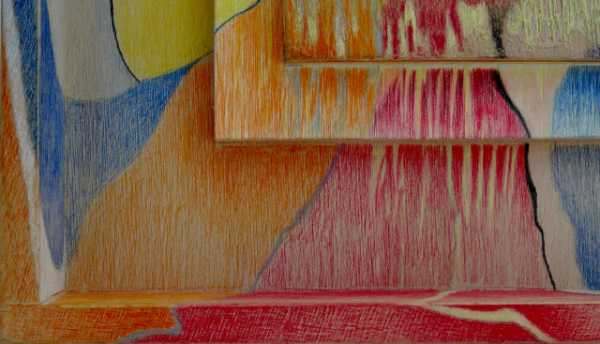 Pencil Picture: Diese Arbeit stellt den Versuch dar, aus Buntstiftstummeln eine ansprechende Komposition zu gestalten. Es entsteht ein Licht-Schatten-Spiel durch die tatsächlich vorhandenen Lichtverhältnisse und die gezeichneten Schlagschatten, welche die Stifte optisch an den Grund binden.