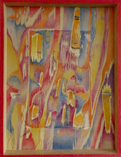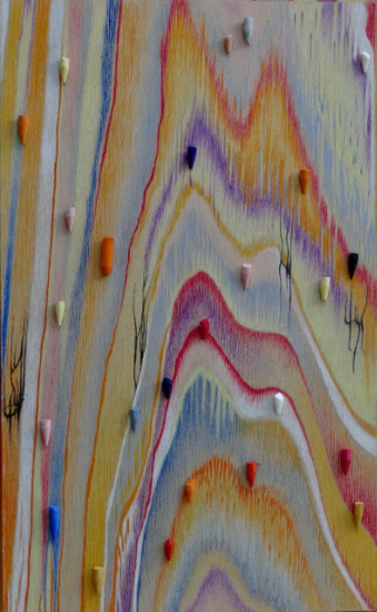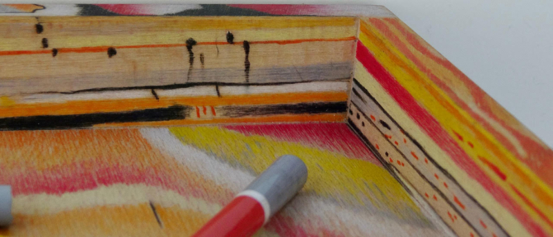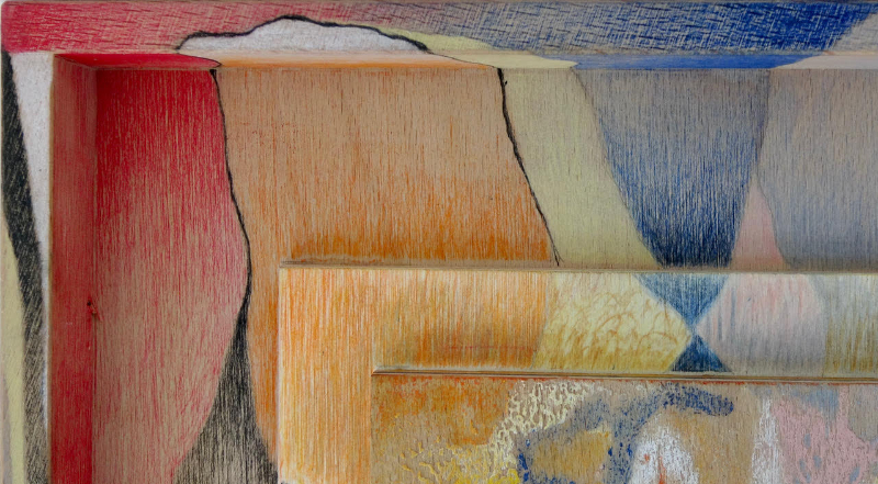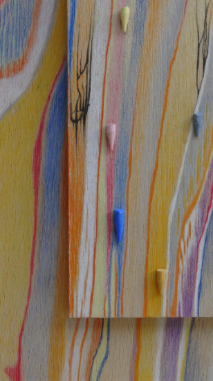 Rise and Fall, 2023/24 Farbstift und -minen auf Holz 40 x 30 x 3 cm