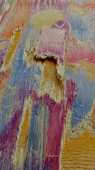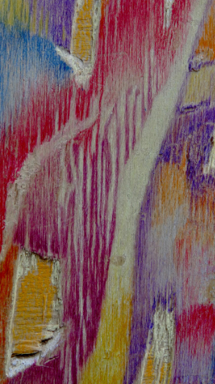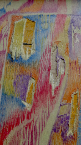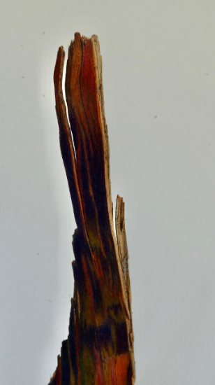 Die rhythmischen Holzmaserungen und ihr Verlauf bilden erneut die Initialzündung; sie sind impulsgebend und richtungsweisend. Ich bediene mich der natürlichen Farbigkeit des Holzes, wobei diese auch erhöht und intensiviert wird.